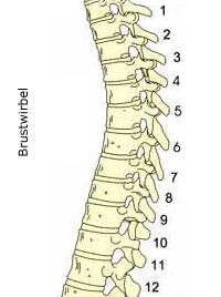 Die Abbildung der Wirbelsäule veranschaulicht die Zusammenhänge bzw. die Einwirkungen der Wirbelsegmente über die dort austretenden Nervenbahnen auf das Körpergeschehen.